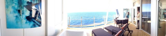 As we board the Reflection, Celebrity’s newest ship; I am reminded of how hospitable, attentive, & wonderfully spoiled Celebrity makes me feel. There wasn’t one sour face in the bunch! Everyone was eager to make me feel welcomed as if I were a celebrity. With a glass of champagne in my hand, I casually strolled through the beautifully appointed main deck oblivious of the luggage I was schlepping around, I could almost feel as if this was all for me. This is Celebrity’s goal, to make you feel like a STAR the moment you walk in, which is how I felt and what the people of this fine cruise line achieved! As I walked into my cabin I noticed how much care & time the architects & engineers involved in building out the accommodations must have taken to make the cabin flow the way it did. To my left we have the bathroom stocked with toiletries and all the other amenities we needed – something totally amiss on my recent tour of RCCL’s Grandeur of the Seas, but that’s a different review. One of my favorite features is the twin sliding glass domed shower door, which sends tingles of happiness up my spine when I see it – I mean shower curtains are so passé not to mention sticky & unsanitary-like (UGH!) moving on…