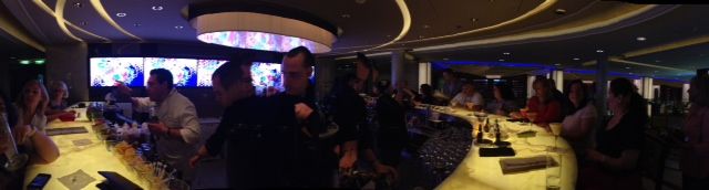 In addition to the dancing & drum collaboration, the acrobatics and singing taking place inside the Reflection Theater the next night was AMAZING! The show Reflection The Show consisted of 80s rock music , incredible costumes, makeup, and amazing acrobatics! The show began with a gang of wild rockers choosing their next leader from the audience, which started out shy, but flourished into a full-fledged rocker with inked up face and amazing vocals as the show progressed. In other words he was Neo being groomed to become THE ONE by Morpheus. By the time the show ended, he achieved  everything shy of stopping bullets! As for the Martini Bar located on deck 4, my only suggestion would be to pick out some land early as it fills up furiously fast with no chance of buying out space from anyone. To say space at the Martini Bar would be a fine piece of real-estate investment would be an understatement! But let’s not stop there… Who enjoys a good glass of wine? Well, it just so happens Cellar Masters is located just across the way from the Martini Bar, where we’re met by Yolvan, Cellar Master’s resident sommelier who explains the machinations of the “pour-by-the-glass” dispensing systems located throughout the impressive cellar, which rivals the masculinity of a Capital Grille. Let’s not forget about the Molecular Bar where Master Mixologist & Liquid Chef, Junior Merino concocted his magic with essence of citrus, pomegranate, & blackberries. But the real magic started when Junior began slowly pouring liquid nitrogen into the glass! Even though I had experienced the Molecular Bar back on the Eclipse, I couldn’t help but feel in awe of what I was seeing here once more