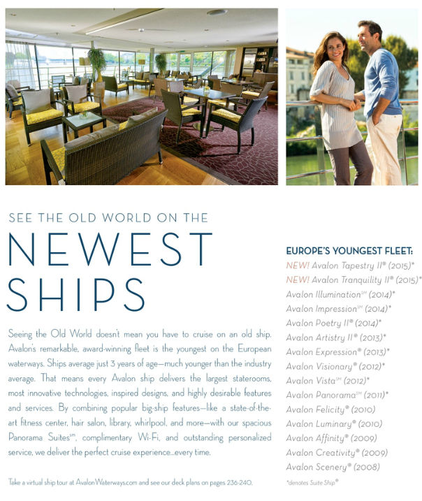 In addition, Avalon also offers river cruises to exotic destinations such as the Mekong, Yangtze and Amazon Rivers and the Galapagos Islands.
