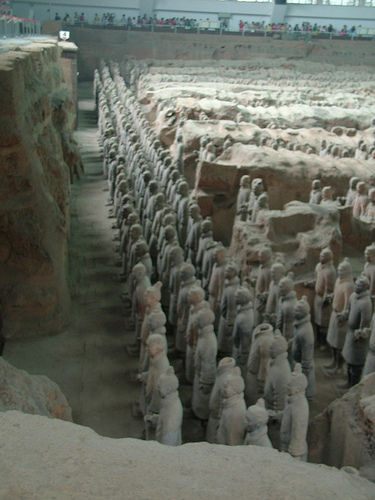 The statues remain where they were uncovered, protected by a large hangar-like hall. Individual soldiers can be studied more closely in a museum exhibit in an adjacent building.