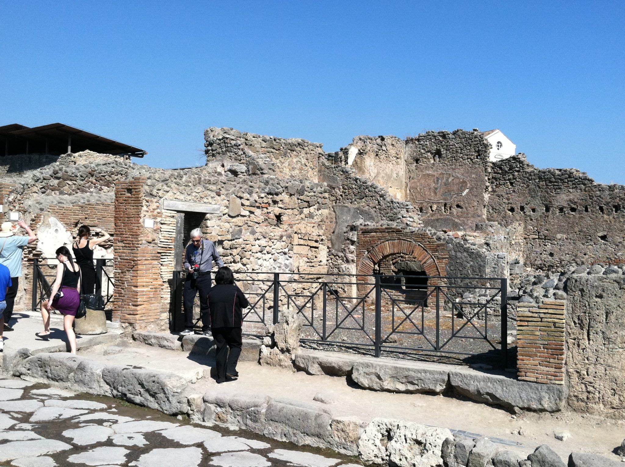 We had a local guide for our hour and a half tour of Pompeii (included in our tour price.) As a matter of fact, all the tours up to this point have been included on the Italian Vogue itinerary. There was one optional horse and carriage ride in Rome that was offered which was reasonably prices, but we chose to stay out on our own. Now back to Pompeii. The local guide was excellent and shared knowledge about the residence and town back in 300BC, as well as the eruption of Mt. Vesuvius in 79AD. The water system was quite impressive, with over 47 public fountains. You walk along the original roads and get a sense of what life was like during that time. You would see where there were merchants, restaurants and even brothels (24 of them). Something else I forgot to mention is that Insight provides you with small headsets so you can wander a bit off on your own in these areas and still clearly hear the tour guide.