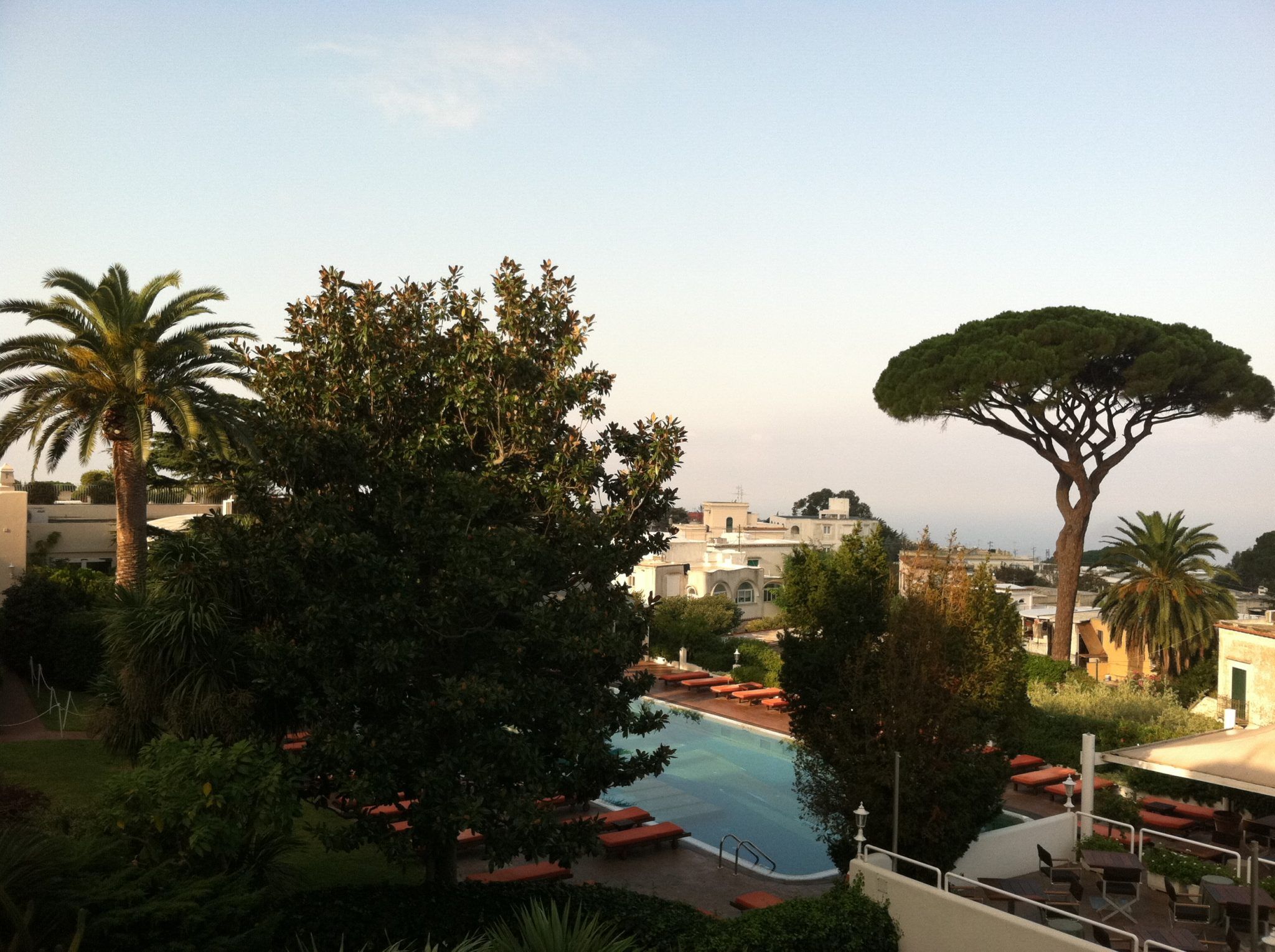 Breakfast (October 6th) was even more impressive at the Capri Palace than at the Exedra. You had the typical eggs, bacon, sausage, fruit, pastries and breads, but then they had added touches such as 6 types of fresh squeezed juice include unique flavors such as Green Apple, Pineapple and Pomegranate. They also had Cappuccino and Lattes included and champagne for those what wanted Mimosas. Did I mention we didn’t have to wake up early today, so every one looked very refreshed. Included in our price was a trip to the Blue Grotto. Some in our group were afraid of enclosed space, so not everyone participated. Once the speed boat arrived to the Grotto, you are greeted by small row boats that fit 4 people. You do have to lie flat all the way back on the boat to get through the narrow opening of the grotto. Once you are inside you can sit up and see the beautiful blue of the water. When this part of the tour was over, my husband and I decided to go out on our own. The rest of the group took the Funicular up to the town of Capri and were treated to lunch at the Via Roma. Everyone told us we missed a great lunch, but were happy going off on our own. We walked around the shops of Capri and then took a cab back up to Ana Capri. We had lunch right outside the local Church, St. Sophia’s in a beautiful square. We planned on having dinner on our balcony watching the sunset over the Mediterranean, so we stopped and bought wine, bread, meats and cheese for that evening. A lot of shops close early when the large cruise ships leave so if you plan on a picnic, buy the items earlier in the day and leave them in your hotel room.