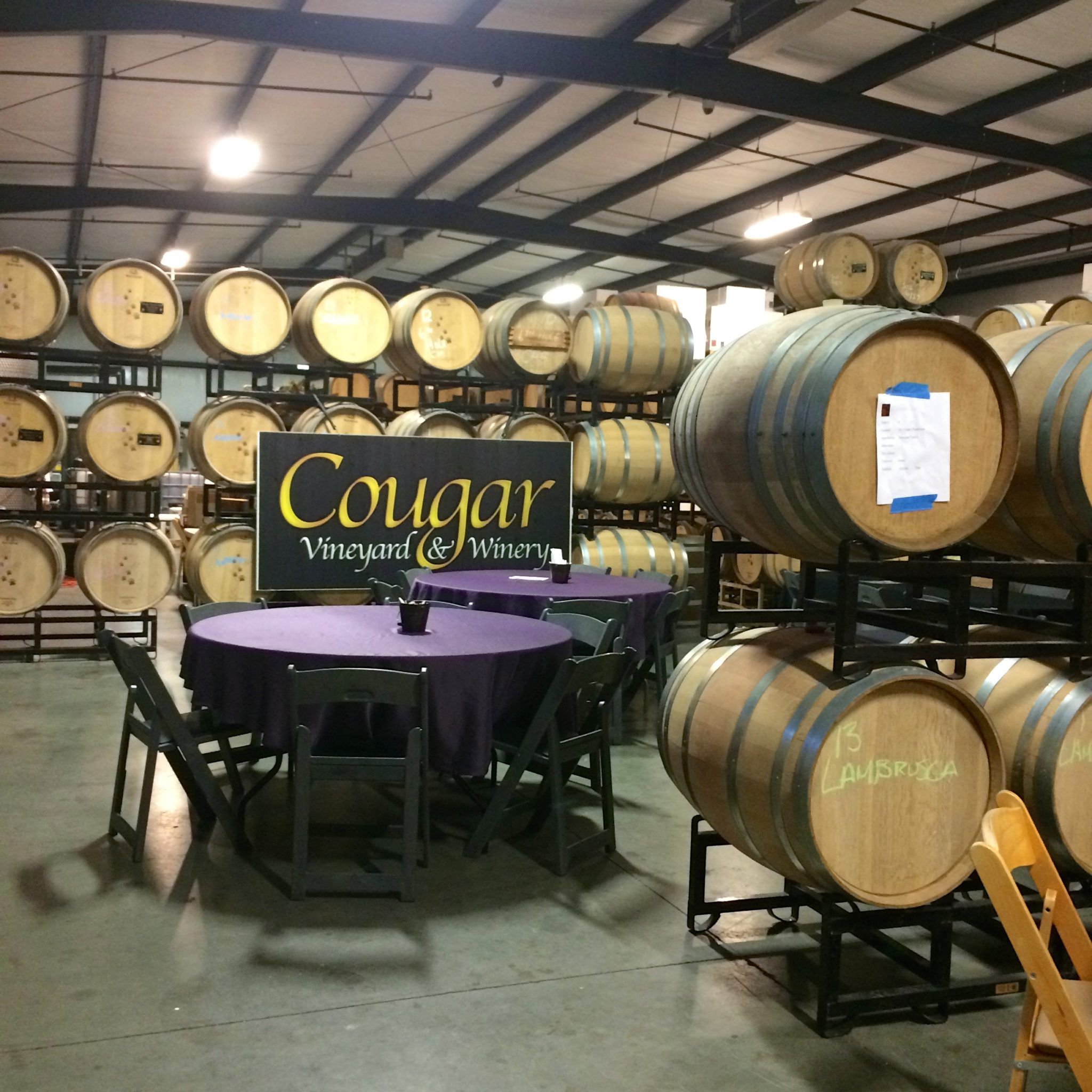 The Cougar Vineyard opened to the public in 2006. The winery specializes in 100% Estate Italian varietals. The vineyard consists of approximately 17 family acres planted with Sangiovese, Aglianico, Montepulciano, Vermentino, Primitivo, Malvasia Bianca, Arneis, Pinot Grigio, Sagrantino, Lambrusco, Brachetto, and NegroAmaro. The winery also offers an exclusive wine club with a pronounced amount of benefits at a reasonable price.
