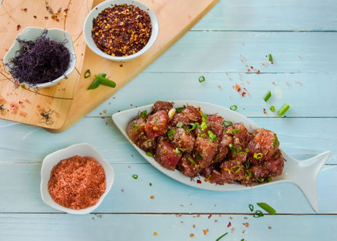 Lomi Lomi Salmon. This delicious fish dish is served cold. It’s made by combining diced salmon fillets with tomatoes, onions, Tabasco sauce, lime juice, and sugar, giving it a sweet and hot flavor.