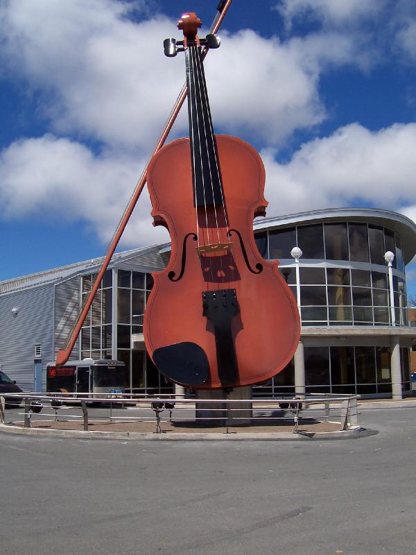 Not located in the U.S., but pictured to the right is the world’s largest playable violin made in Markneukirchen, Germany. It is 14 feet tall, 4.8 feet wide, and weighs 2,204.6 pounds. Imagine source unknown from Pinterest.