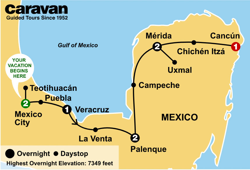 A great vacation at an affordable price. Your Mexico’s Ancient Civilizations tour is fully guided and includes all meals, all hotels, and all activities. Sightseeing Highlights include: Visit to Teotihuacán; Visit Mexico City’s world-famous National Museum of Anthropology; Basilica Cathedral of Puebla, a Unesco World Heritage Site; Stroll the Zócalo park and plaza in Puebla’s historic center. Visit La Venta Park, Palenque as well as a visit to the Mayan ruins of Uxmal. See the Pyramid of the Magicians, the Nunnery Quadrangle, and the Turtle House.