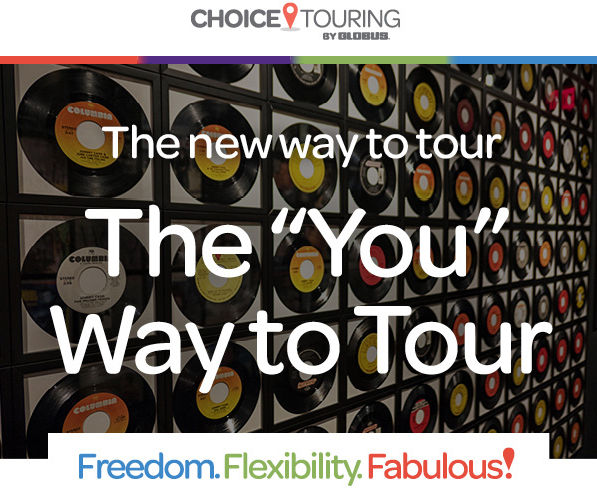 Globus has just introduced a YOU way to Tour! Choice touring by Globus is a new touring style with freedom and flexibility. You now have an entirely new way to cure your curiosity and still have guided sightseeing at the must-see sights. You have your choice of excursions in key and off-the-beaten-path destinations all included in the package price. You can tailor your tour to your own interests, pleasures, and passions. It is all up to you, with no added expenditures, no options to pay for separately. You will have a wide-range menu of included excursions to design your own discovery, pick what to do, and make your own memories.