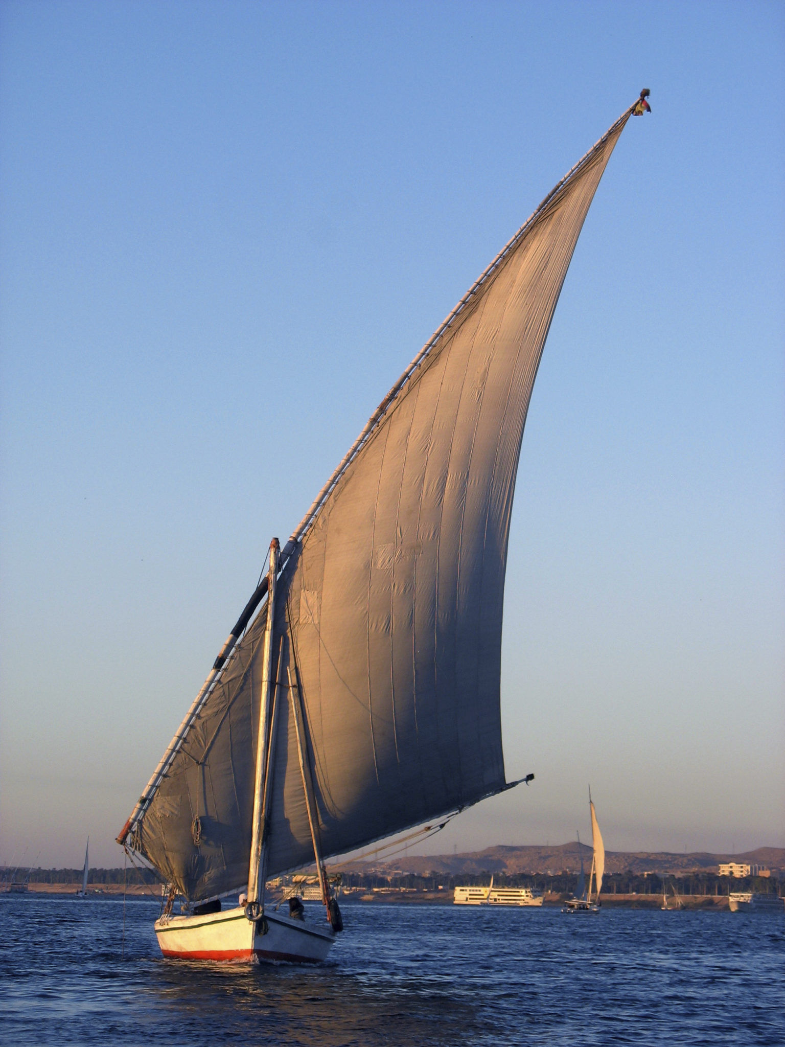 Feluccas are one of the most relaxing ways to travel the waters in Egypt. They basically consist of a wooden hull with a lateen sail. Dependent on their size they can accommodate about ten passengers plus a couple of crew members. Feluccas are popular among tourist that want to see the Nile River.