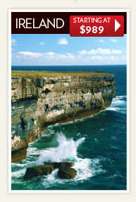 Prices shown are land-only without airfare; air-inclusive pricing is available. Italy starting at price based on ‘Umbria’s Treasures’ (ZZU) vacation departing 9/24/11. Ireland starting at price based on ‘Introduction to Ireland’ (GR) vacation departing 12/10/11. Spain starting at price based on ‘Spectacular Spain’ (ZY) vacation departing 11/11/11