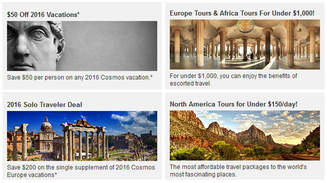 Vacation budgets: It’s hard to imagine setting aside money for a vacation, but small adjustments make it very possible to include a vacation in your budget. Cosmos tours recently launched a campaign called “A little change could go a long way.” Cut out just a few stops at the specialty coffee shops and you an enjoy a delectable taste of the real thing on the other side of the globe. 20 grand lattes = 1 grand day in Italy or a couple of days on a National Park tour. It’s that simple.